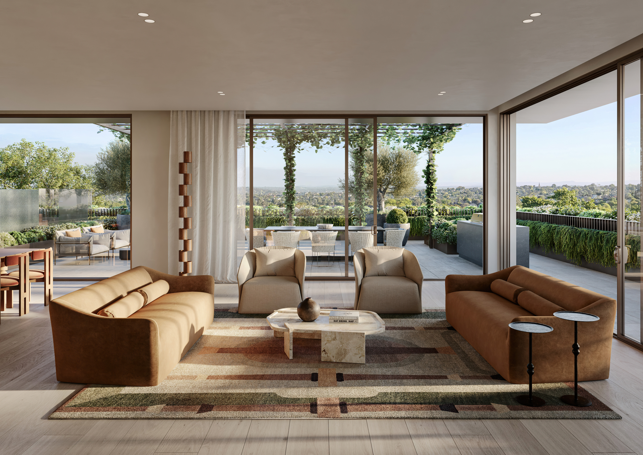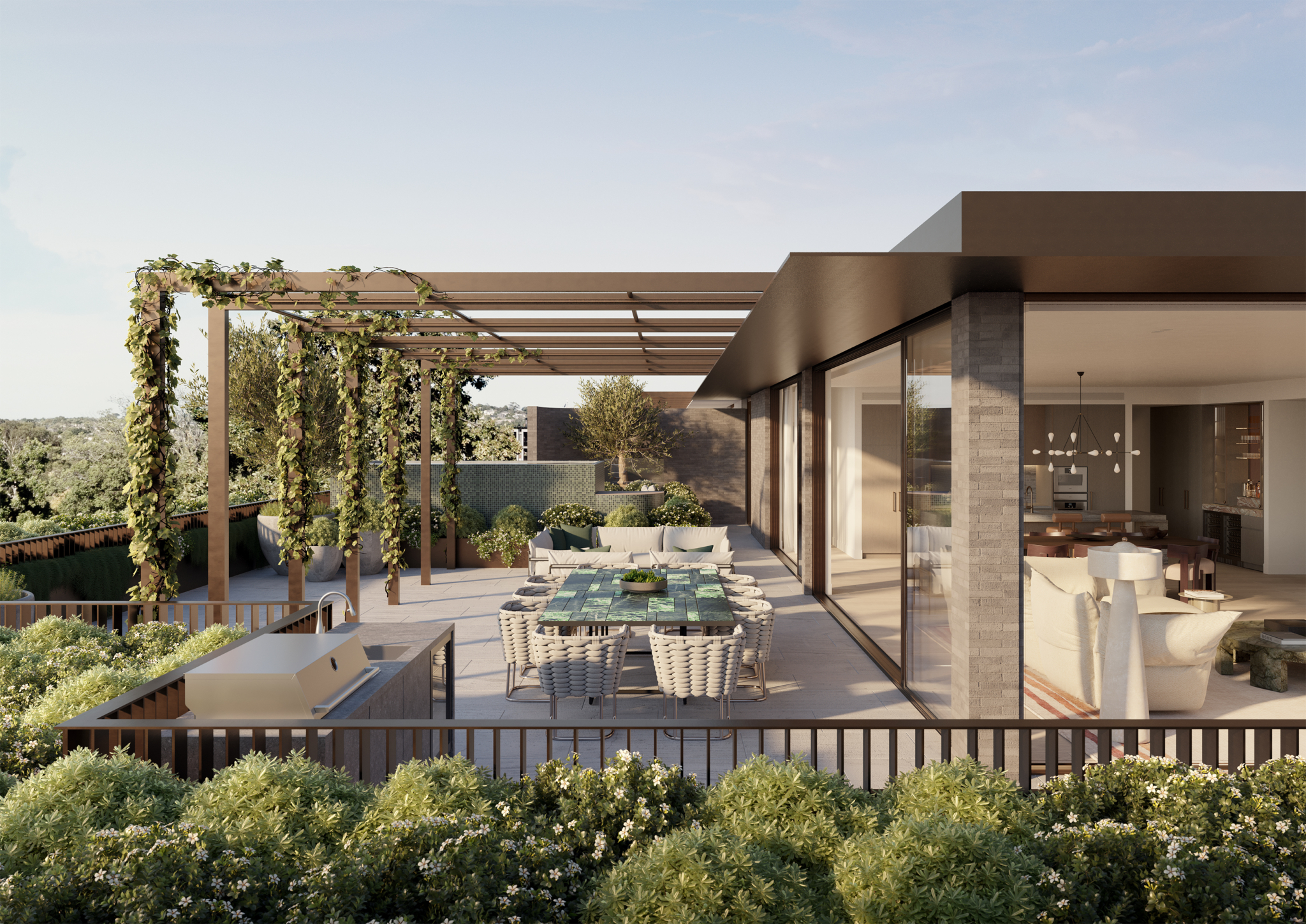 Expansive Wrap-Around Terrace: The largest residence available at Maleela Rise, with an expansive 253m² terrace, including a pool and outdoor kitchen sized to enable both dining and lounging opportunities under the shaded pergola.